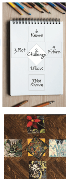 To add more details and spontaneity to the creative challenge, pick more cards, and then combine their purpose in one story. The cross, a six card spread, is a template to start with.